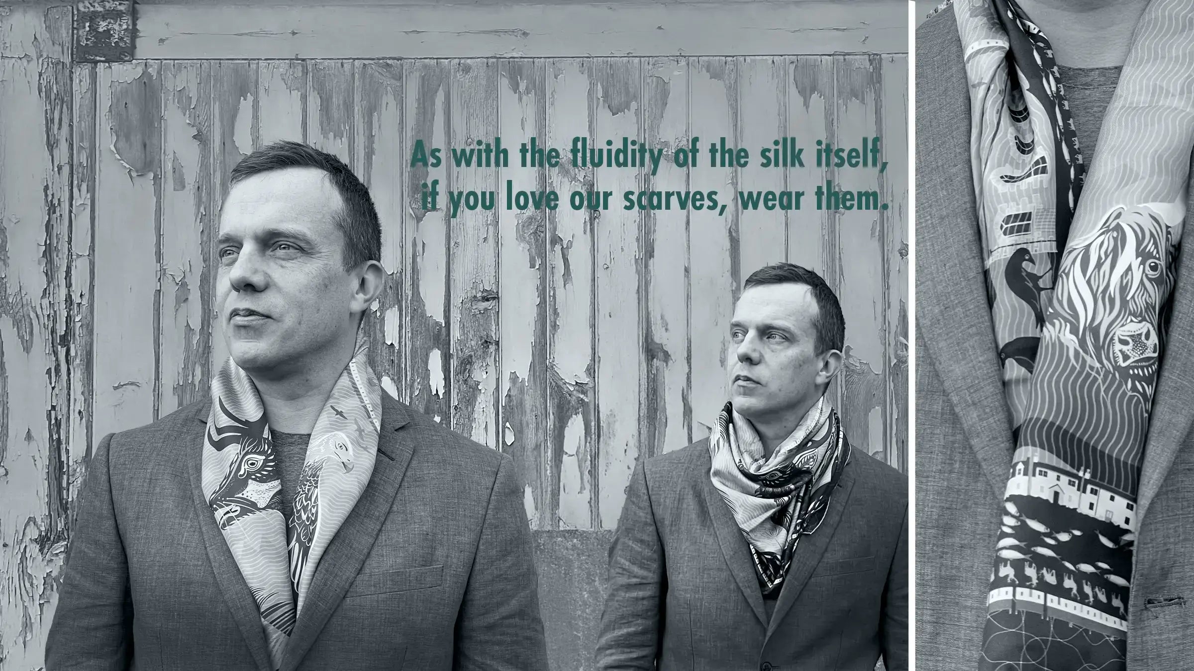 In 2023, we unveil the first in our emerging line of 100% silk scarves.